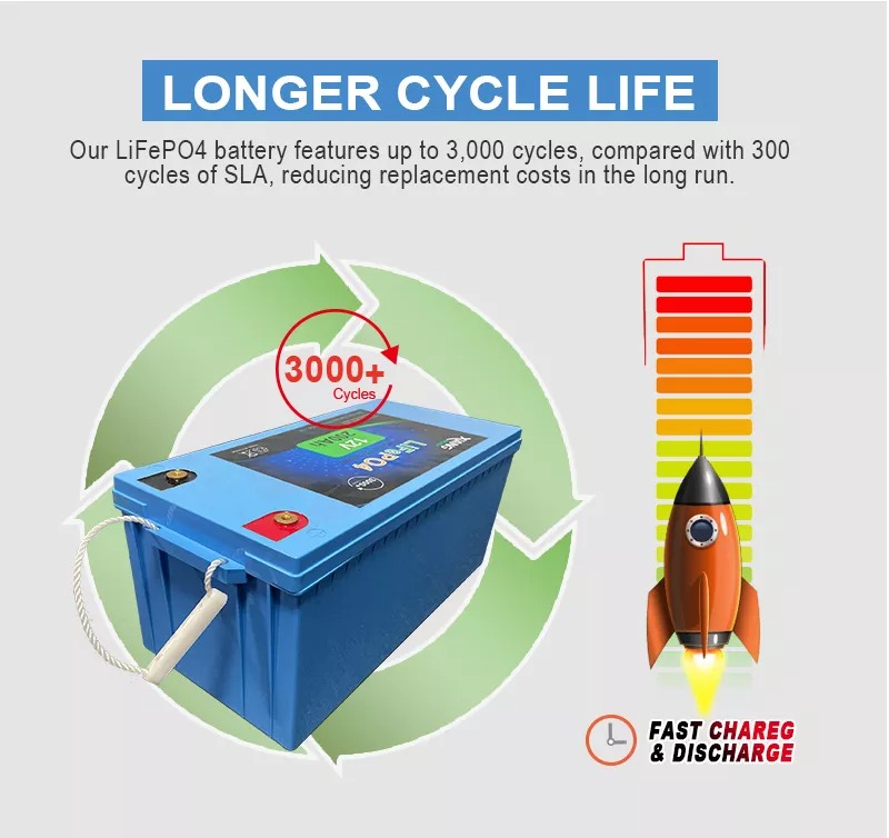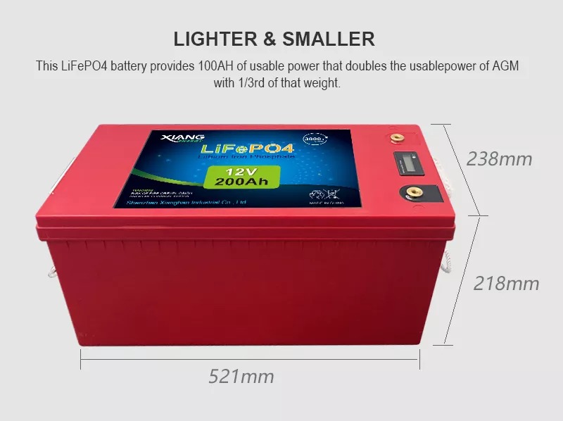 DESCRIPTION 【Uncompromising Quality】 State-of-the-art battery cells ensure a lifespan of more than 2000 cycles, 200A continuous discharge current, and a wide operating temperature range. 【Easy Upgrades】 Upgrades to lithium seamlessly with the standard BCI group size but a greater energy density, a deeper discharge capability, a higher round-trip efficiency, and a faster charging speed. 【Reliable BMS System】 The state-of-the-art battery management system (BMS) with high-performance dual-processors provides short circuit, over charging and over-temperature protection while maintaining a balanced voltage across all cells. 【Low Temperature Protection Function】 The lithium battery has low temperature charging and discharging protection function. When the temperature is below 0℃, it will stop charging. When the temperature is below -20℃, it will stop discharging. 【Auto-balancing Function】 Easily connect multiple batteries in parallel with the auto-balancing function, improving the average charging efficiency for your batteries in the long term. 【Real-time monitoring】 Monitors the battery operation status on mobile devices in real time with the built-in Bluetooth module.