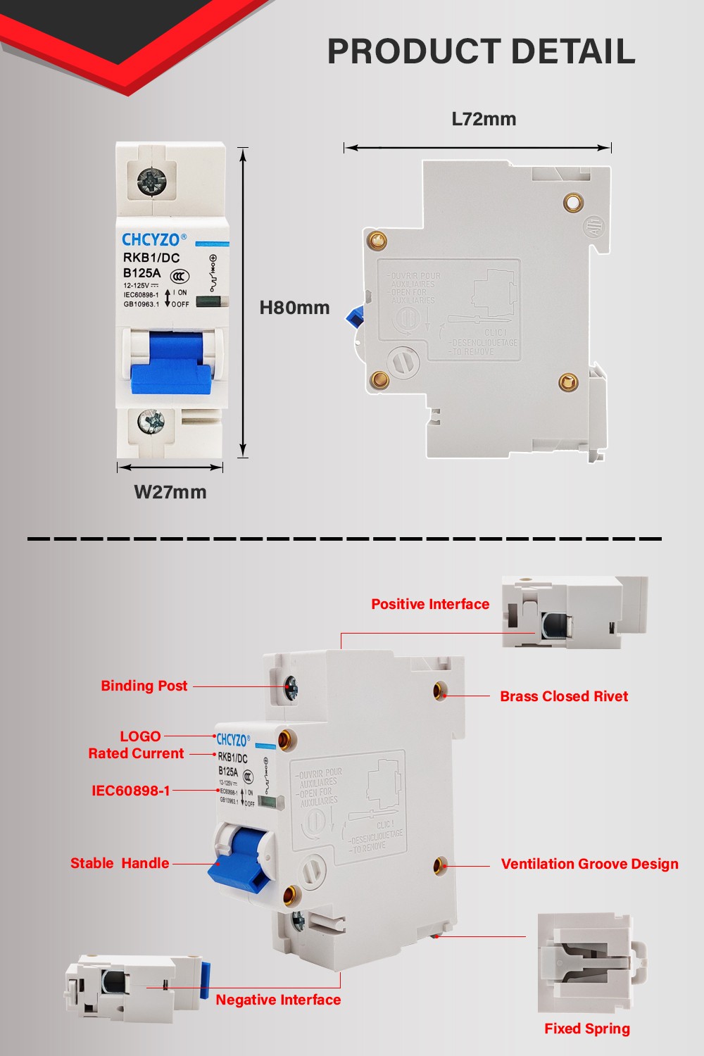 FAST TRIP: The electromagnetic trip system can trip immediately when the circuit is short-circuited to protect the safety of the circuit.
